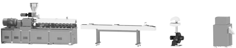 擠出后經(jīng)過(guò)切粒機(jī)模頭,為了有效切粒,必須時(shí)溫度降下來(lái),故此需在切粒機(jī)外圍有水環(huán)