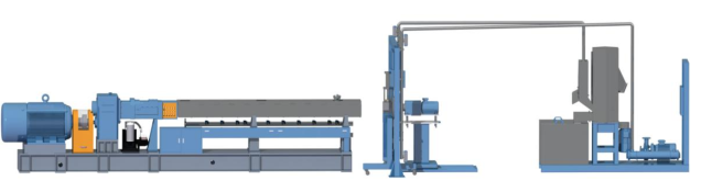 該系統(tǒng)通常包括模頭,切粒小車,旋風(fēng)分離、振動(dòng)輸送等。
